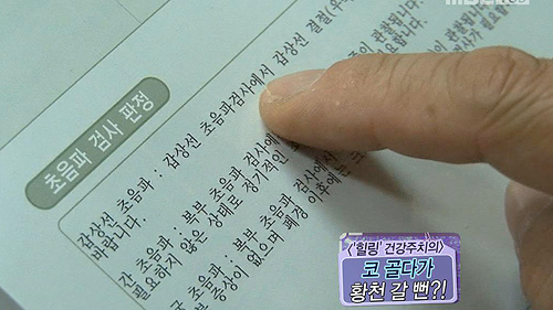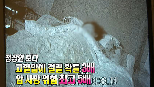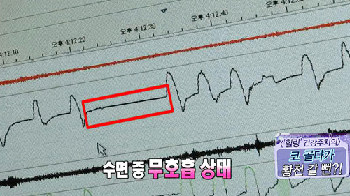 검사 결과 주부는 심한 코골이와 수면무호흡 증상이 함께 나타난 것으로 확인되었다. 수면무호흡증이란, 자는 도중 기도가 막혀 산소가 제대로 공급이 되지 않는 것을 말한다. 코골이와 수면 무호흡이 지속될 경우, 심혈관계에 많은 부담을 갖게 되어 고지혈증과 고혈압이 발생할 수 있다.