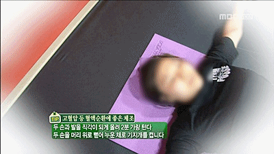 혈액순환 체조 1. 두 손을 머리 위로 뻗어 누운 채로 기지개를 켠다