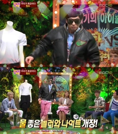 그리고 이어진 '유재석의 댄스타임'. 최근 가수 싸이와의 '댄스대결'로 화제를 모았던 유재석은 이 날 역시 기다렸다는 듯 음악에 몸을 맡기며 자신감 넘치는 댄스 실력을 보여줬다. 하지만 유재석은 춤이 끝나자마자 "옷이 정말 무겁다"며 헐떡거려 웃음을 자아냈다.