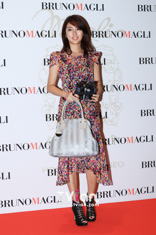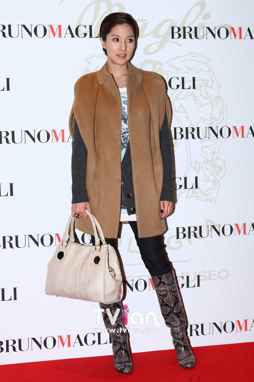 영하의 날씨가 무색해지는 윤은혜의 화려한 원피스. 행사장 안은 호텔 내부였지만, 윤은혜가 걸치고 있던 코트를 벗고 포토월에 서는 순간 봄이 온 것 같은 느낌이 든다. 윤은혜 역시 손예진과 같은 디자인의 브루노말리 백을 들고 행사장을 찾았다.