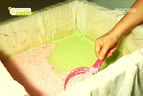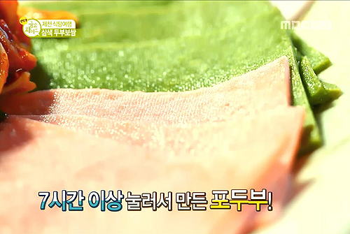 색동저고리처럼 고운 빛깔의 삼색두부보쌈은 매일 아침 콩을 갈아 만드는 정성어린 음식이다.