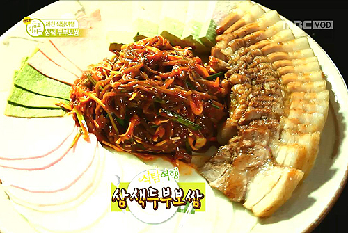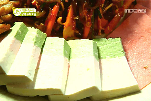 제천에서 만난 세 번째 음식 입과 눈이 즐거운 삼색 두부 보쌈이다.