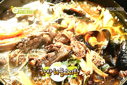 쌀쌀한 날씨에 생각나는 한방오리탕이 탄생한다. 오리고기 먼저 먹고 시원한 해물을 넣어