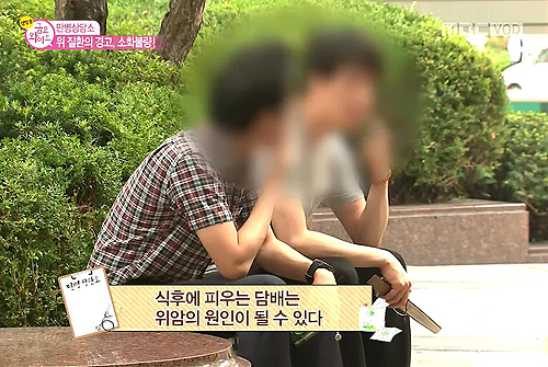 식후에 피우는 담배는 자극성이 강해 일시적으로 소화되는 것처럼 느껴지지만 위암의 원인이 될 수도 있다.