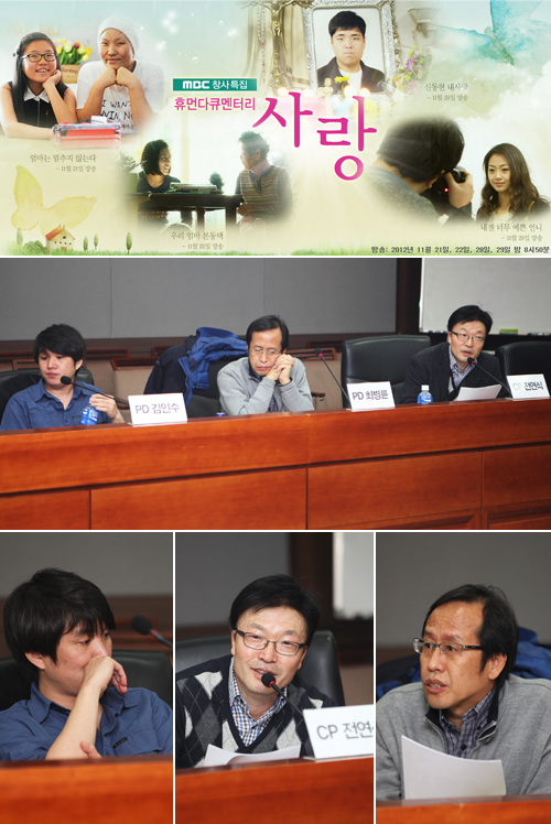 이날 자리에는 전연식 CP와 최병륜 감독, 신인수 감독이 참석해 2012 <휴먼다큐멘터리 사랑>을 기획하게 된 의도와 촬영 에피소드 등을 설명했고, 하이라이트 영상 시사회도 함께 가졌다.
