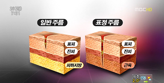 하지만 표정 주름은 표정을 지을 때마다 근육이 함께 움직이면서, 일반주름보다 더 깊은 근육층에 생긴다.