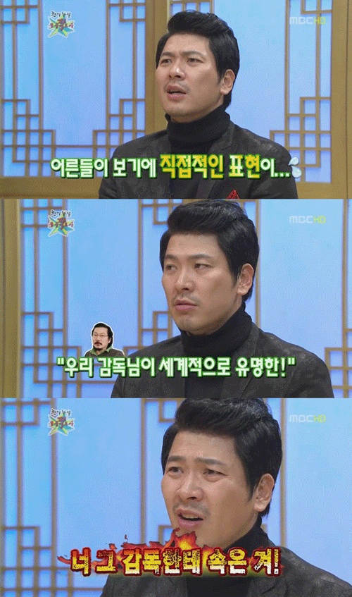 김상경은 이어 "아버님께 '홍상수 감독님이 세계적으로 유명한 감독이고, 칸 영화제 가고, 9시 뉴스 등장하고, 턱시도 입고 레드카펫 걸어갈 것'이라고 하자 딱 한마디 하시더라"며 "'너 감독한테 속았다. 사기 당한 거다. 그런 거 하지 마라'고 하셨다"고 밝혀 좌중을 폭소케 했다.