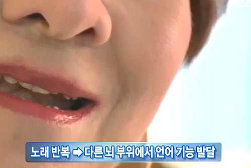 음악치료를 받게 하면 다른 뇌 부위에서 언어기능까지 새로 발달해 말을 다시 할 수 있게 된다.