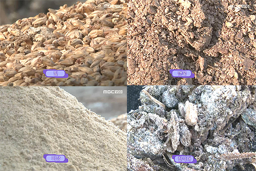 밀, 깻묵, 미강, 한약재 등 유황오리에 걸 맞는 재료들만 엄선하여 황금비율로 섞어 특재사료가 완성된다.