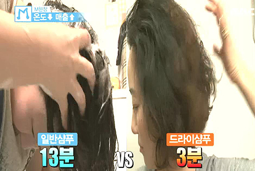 그 결과 일반샴푸 소요시간 약 13분, 드라이 샴푸는 약 3분으로 10분정도 시간을 절약할 수 있었다.