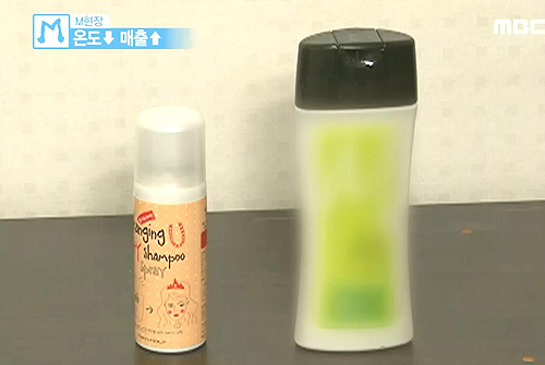 물 없이 머리를 감을 수 있어 시간 절약되고 젖은 머리 추위 덜어준다는 일명 마법의 샴푸다.