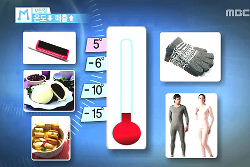 이처럼 겨울철 기온은 뚝뚝 떨어져도 매출은 쑥쑥 올라가는 다양한 상품들, 온도에 따라 잘나가는 상품도 다르다.