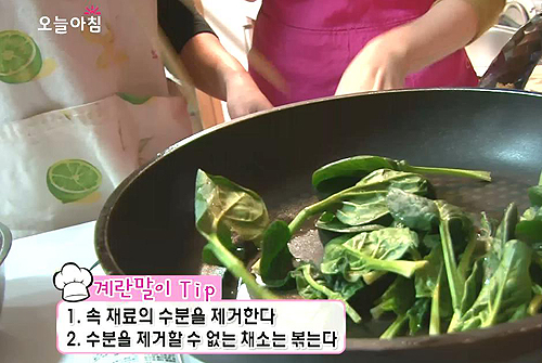 계란말이에 들어가는 일단 물기를 꼭 짜 주고, 만약 수분을 제거할 수 없다면