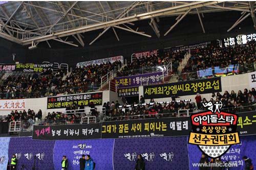 명절 대표 프로그램으로 자리잡은 MBC <아이돌스타 육상 양궁 선수권 대회>에 출전한 아이돌 그룹들을 위해 팬들이 준비한 이색 플랜카드가 화제다. 재치있는 문구로 좋아하는 아이돌 그룹을 응원하고 있다.