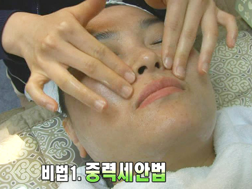 볼 바깥쪽에서 안쪽으로 모공에 낀 때를 빼낸다는 느낌으로 세안을 하는 중력 세안법은