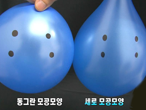 풍선 두 개를 하나는 탱탱하게 바람을 넣고 하나는 물을 넣어서 쳐지게 해보니 물을 넣은