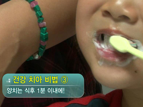 특히 양치는 식후 1분 이내에 하면 치주질환 균을 90%이상을 제거할 수가 있다.