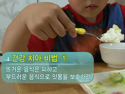 건강한 치아를 유지하기 위해서는 뜨거운 음식은 피하고 부드러운 음식으로 잇몸을 보호해 주어야 한다.