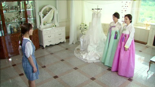 웨딩드레스를 옆에 두고 채원을 기다리고 있었다.
