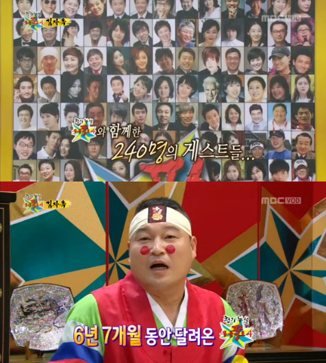 22일 264회로 종영을 맞은 MBC <황금어장-무릎팍 도사>가 그동안 출연한 240명의 게스트들의 모습을 한판의 사진으로 모아 보여줬다.