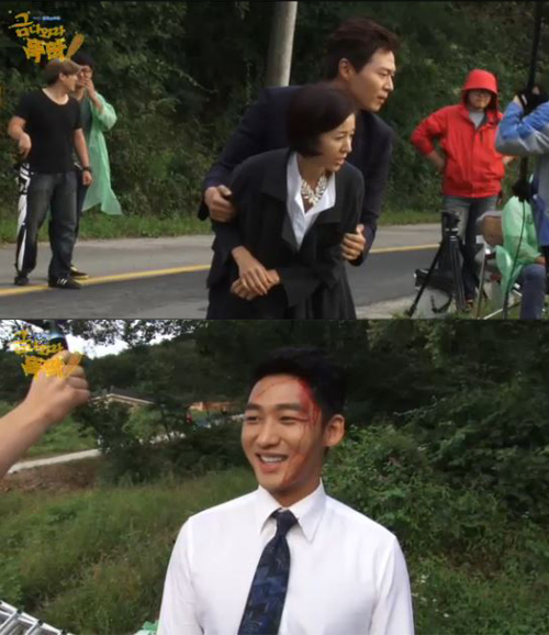 이날 촬영 현장에서는 이태성이 부서진 차 안에서 한 시간 가량 동안 움직이지도 못한채 허리를 꼿꼿히 펴고 있어야 했다. 이에 이혜숙은 "현준아~ 어떡하면 좋아"라며 안타까워 했다. 이태성은 '허리가 아프다'고 말하면서도 웃음을 잃지 않았다.