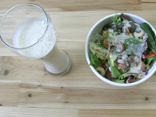 한층 높여주는 드레싱과 견과류, 생과일주스를 먹고