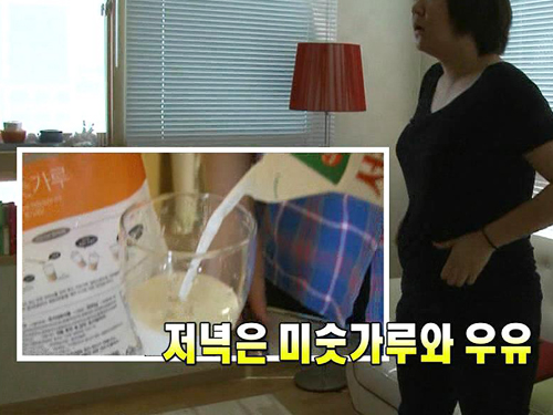 점심은 김밥 한 줄과 비타민 음료를 먹은 후 저녁엔 우유에 미숫가루로 식사를 대신할 경우