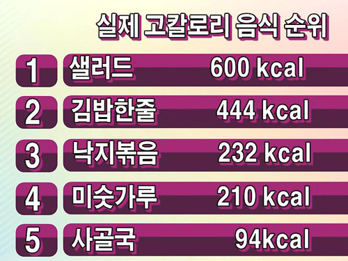 시민들이 생각하는 칼로리에 대한 인식을 알아보기 위해 칼로리 순위를 매겨본 결과