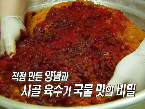 라면은 고춧가루와 고추씨, 마늘 등을 넣어 직접 만들어낸 양념과