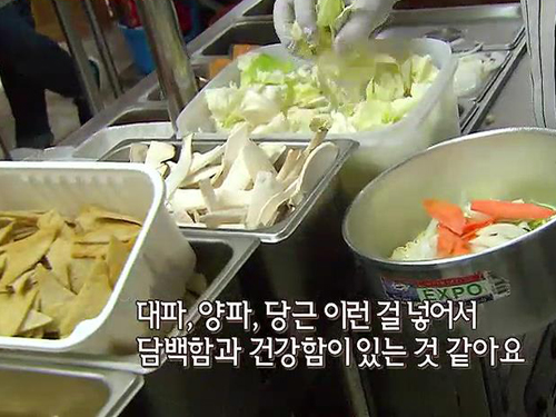 스프를 넣어 요리를 한 결과 주부의 90% 이상이 스프를 넣은 김치찌개를 선택했다.