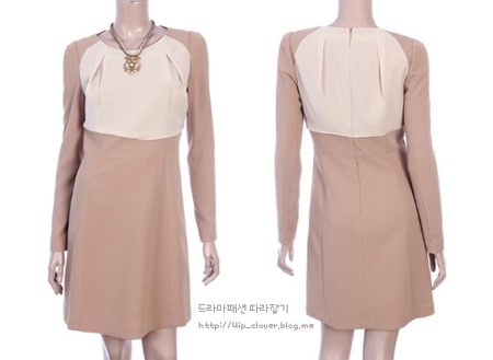 폴리소재로 부드럽고 깔끔한 배색이 포인트인 원피스로