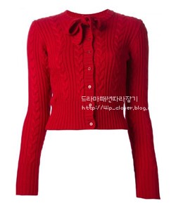 한지혜씨가 입은 빨간 가디건와 세련된 타탄 체크스커트는