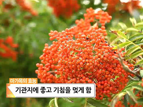 요즘 같은 환절기에 마가목을 달여서 먹으면 기관지에 좋고 기침을 멎게 한다.