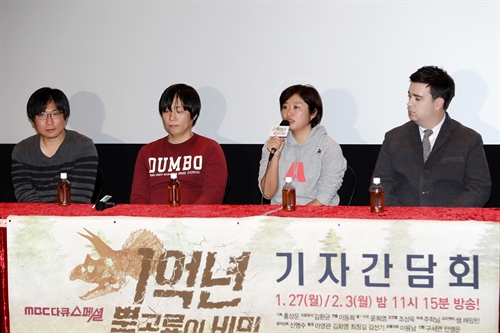 21일 오후 2시 MBC 일산 드림센터에서 MBC 다큐스페셜 <1억년: 뿔공룡의 비밀>이 이동희 PD를 비롯한 이영관 촬영 감독, 이승용 CG감독, 샘 해밍턴, 조성욱 조연출이 참석한 가운데 기자간담회를 열었다.