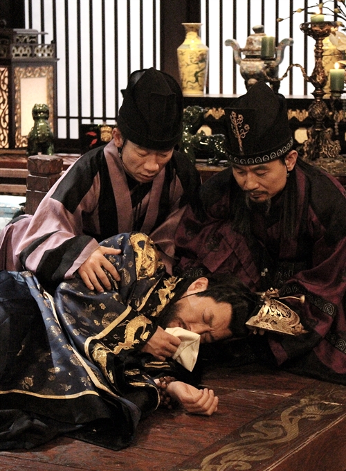 13일(목) 방송되는 MBC 특별기획 <제왕의 딸, 수백향>에서 무령대왕 역을 맡아 애끓는 부성애 연기를 펼쳤던 이재룡이 가슴을 부여잡고 쓰러진 모습이 공개되었다.