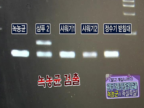 샴푸 통 안에 정말 녹농균이 있는지 다 쓴 제품을 실험해 보았는데 녹농균으로 의심되는