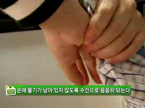또한 설거지를 한 후 물기가 남아 있는 손을 수건으로 꼼꼼히 닦는 것도 중요하다.