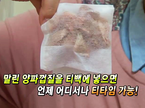 잘 건조된 양파 껍질을 육수용 티백에 넣으면 언제 어디서나 양파껍질 차를 즐길 수 있다.