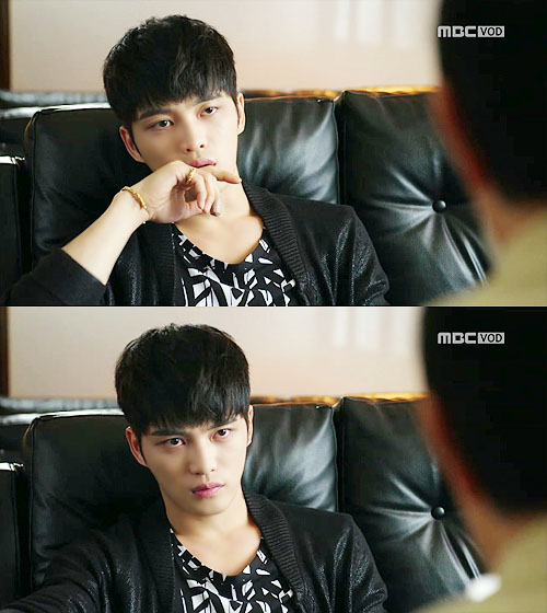 27일(화) 방송된 MBC 월화특별기획 <트라이앵글> 8회에서 고복태(김병옥 분)에게 인정받기 위해 사설 카지노를 접수 할 것이라는 영달(김재중 분)에 동수(이범수 분)는 언제든 돕겠다 이야기한다. 이 장면에서 김재중은 라운드 티셔츠와 블랙 숏가디건을 매치해 눈길을 끌었다. 김재중이 착용한 이 라운드 티셔츠는 휴고보스의 제품으로 블랙&화이트 색상의 기하학적인 패턴이 스타일리시한 제품이다.