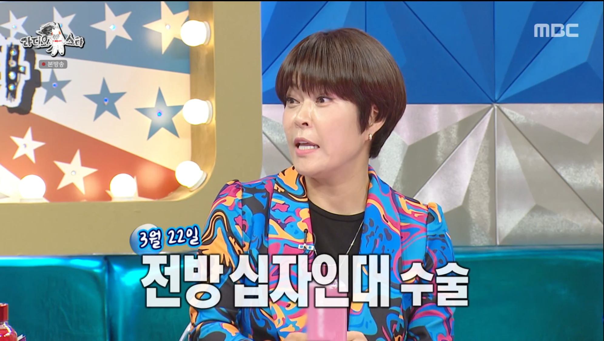 ‘라디오스타’ 조혜련, “십자인대 수술 후 재활하며 '아나까나' 축가” 조혜련이 전방 십자인대 수술을 했다고 이야기했다.