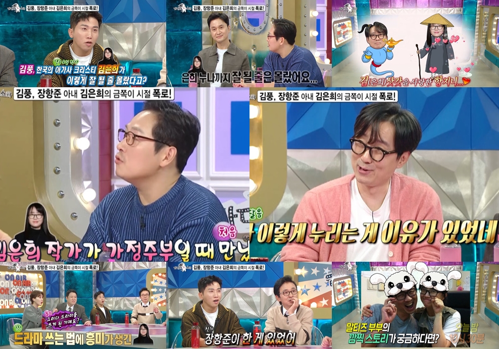 김풍 "김은희, 가정주부일 때 집안일 안 해…잘될 줄 몰랐다"(라스) '라디오스타'에 출연한 김풍이 스타 작가 김은희의 '금쪽이 시절'을 폭로해 이목을 집중시켰다. 아내 김은희만을 위한 '항지니' 장항준의 반전이 담긴 과거 목격담을 방출해 본방송을 궁금케 한다.