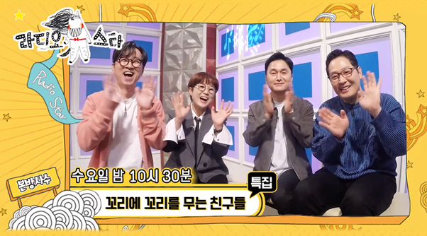 18일(수) 방송된 MBC 예능프로그램 ‘라디오스타’는 ‘꼬리에 꼬리를 무는 친구들' 특집으로 장항준, 송은이, 장현성, 김풍이 출연했다.