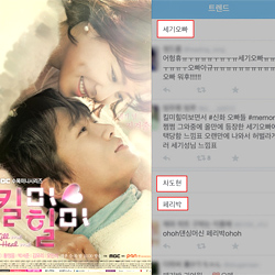 4일(수) 방송된 <킬미, 힐미> 직후 '세기오빠', '차도현', '페리박'이 실시간 트위터...
