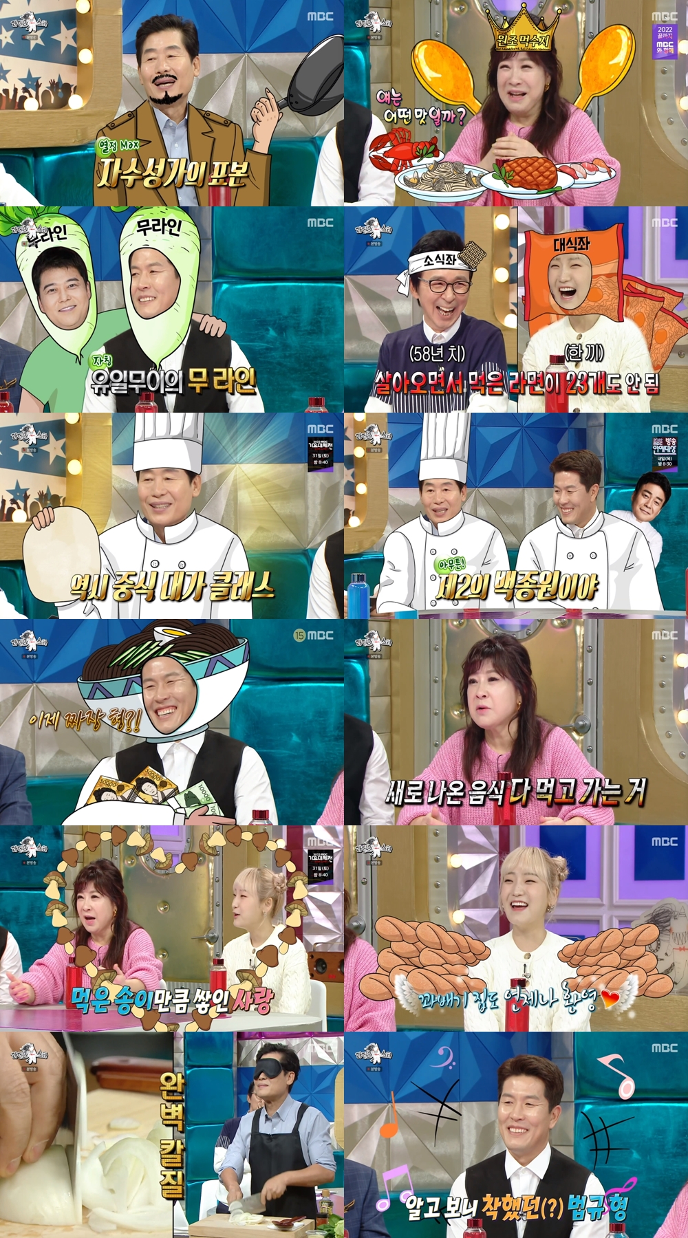 ‘라디오스타’ 이연복·김병현·노사연·히밥, 2049시청률 접수한 '밥통령'들 ‘라디오스타’ 이연복, 김병현, 노사연, 히밥 ‘밥통령’들이 출연해 뜨거운 텐션 김이 모락모락 나는 토크 한상 차림을 시청자들에게 선물했다. 이연복의 식욕 끌어올리는 고급짬뽕라면, 노사연과 히밥 ‘먹자매’의 남다른 ...