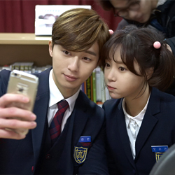 MBC 수목미니시리즈 <킬미, 힐미>에서 황정음과 박서준이 교복을 입고 ‘깜찍 표정’ 대결을 펼치며 ‘셀피놀이 삼매경’에 푹 빠져 있는 현장이 포착돼 눈길을 끌고 있다.