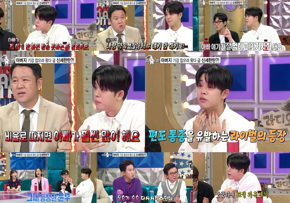 '라디오스타' 그리, 윤후 향한 라이벌 의식 "항상 날 따라해" 그리가 '라디오스타'에서 가족 토크를 자주 했던 김구라를 이해하게 됐다고 고백한 모습이 포착됐다. 그는 아빠 김구라와 가족 토크 비율 논쟁을 펼치는가 하면, 아역 스타 윤후가 "항상 저를 따라한다"라며 라이벌 의식(...