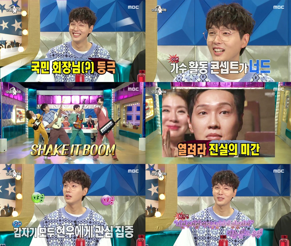 13일 방송된 MBC 예능프로그램 ‘라디오스타’는 ‘왜 춤 수재인가’ 특집으로 김종민, 허니제이, 던, 조권, 미노이가 출연했다.