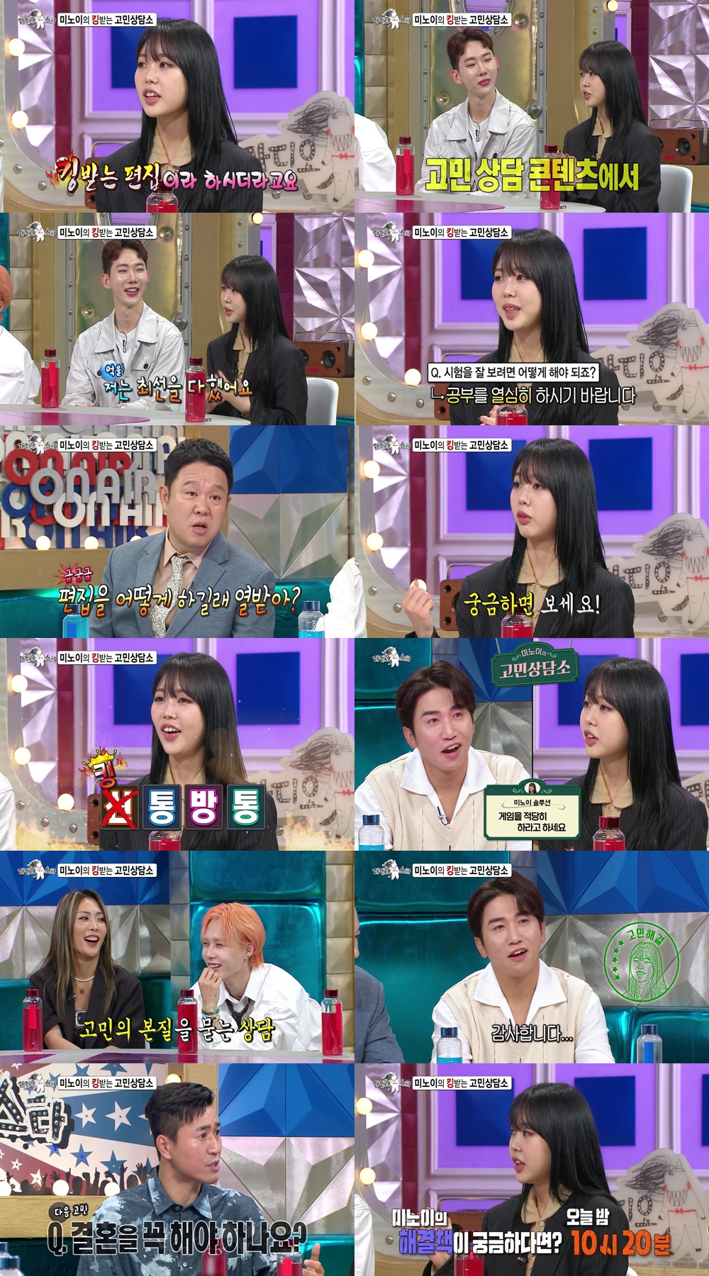 '라스' 미노이, 킹받는 고민상담소 오픈…스튜디오 대폭소 싱어송라이터 미노이가 '라디오스타'에서 킹받는 고민상담소를 오픈했다. 게임을 많이 하는 아들 고민을 가진 MC 유세윤에게 "적당히 하라고 하면 된다"라고 할 말 잃게 만드는 해답을 내놓아 스튜디오를 초토화시켰다. 이...