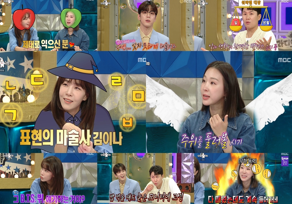 ‘라디오스타’ 김이나, 방탄소년단 뷔 솔로앨범 작사 소식 알려 ‘라디오스타’ 김이나가 ‘언금술사’급 착 달라붙는 어록과 입담을 자랑하며 매력을 제대로 터뜨렸다. 이지혜는 거침없는 솔직 토크를 쏟아내며 안방을 무장해제시켰다. 김이나, 이지혜, 김민규, 양세형 ‘부럽지가 않어~’ ...