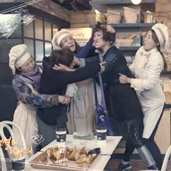 MBC 주말특별기획 <전설의 마녀>에서 김윤서와 변정수가 김수미에게 ‘날계란 세례’ 봉변을 당했다.